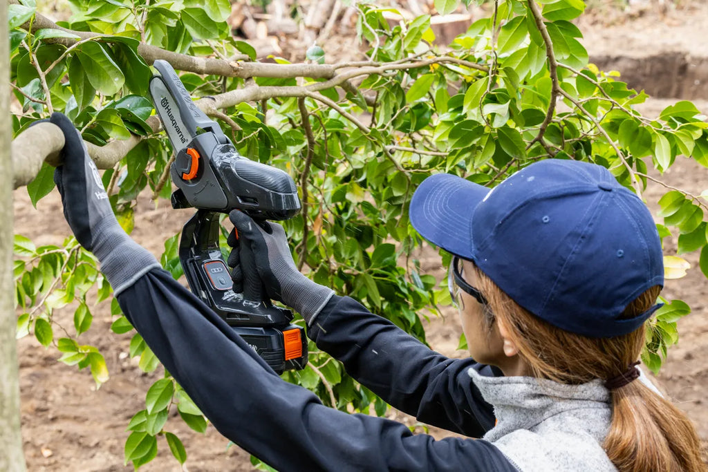 樹木の剪定に静音で手軽に使えます。